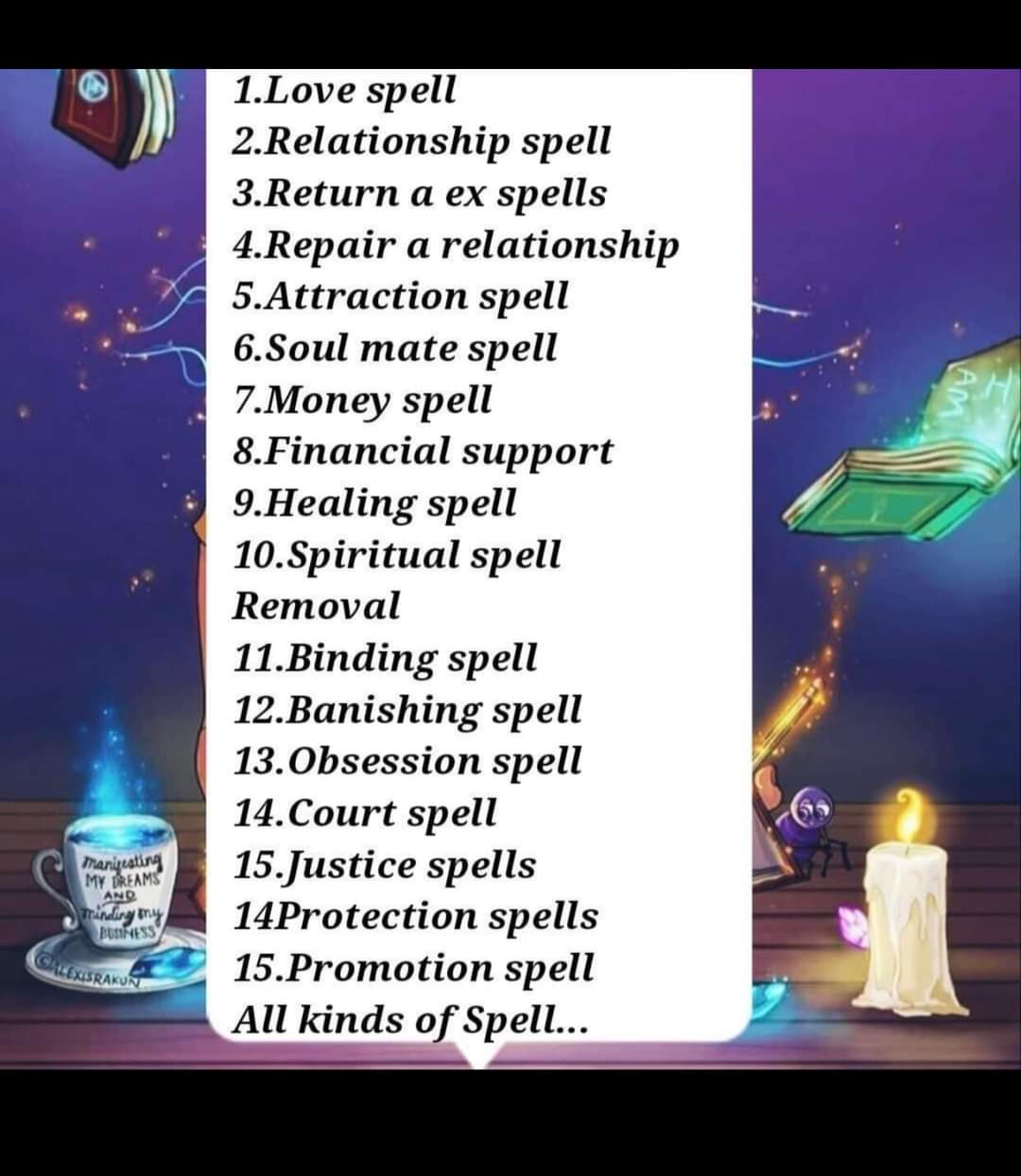 Beware of fabricated reviews and testimonies endorsing tricksters, do not get scammed because you seek for a genuine spell caster that will help solve and guarantee you result within the next 24hours, Depending on how serious and prepared you are to get your desired help here. We are approved spell caster by the authority to help people with any kind of situation, This is also to alert the public that our spell casting has no form of any side effect and is harmless. Our spell casting services is as follows:
